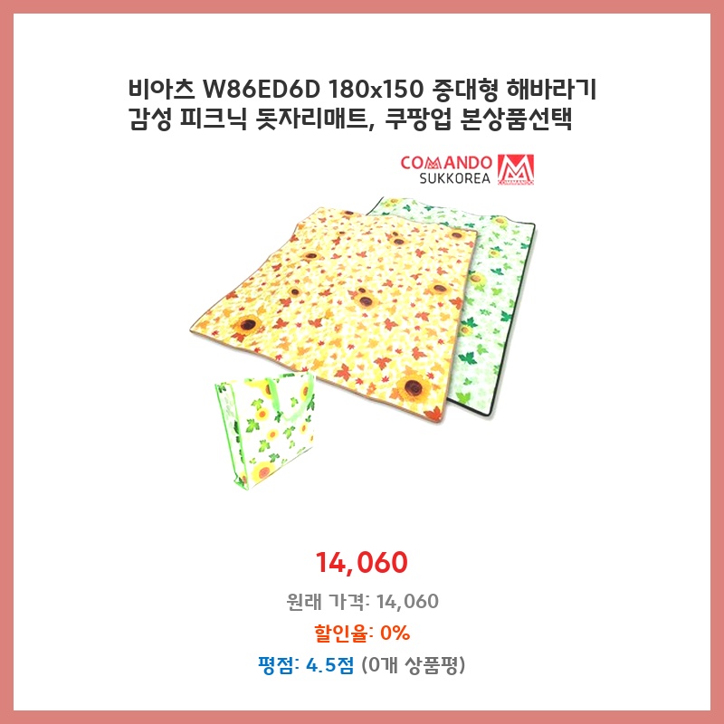 넉넉한 사이즈(180x150cm)에 해바라기 디자인이 예뻐서 피크닉용으로 구매했습니다. 두꺼운 편이라 땅의 차가움이나 습기가 덜 느껴질 것 같아 선택했습니다. 가격 대비 품질이 좋아 보였습니다.