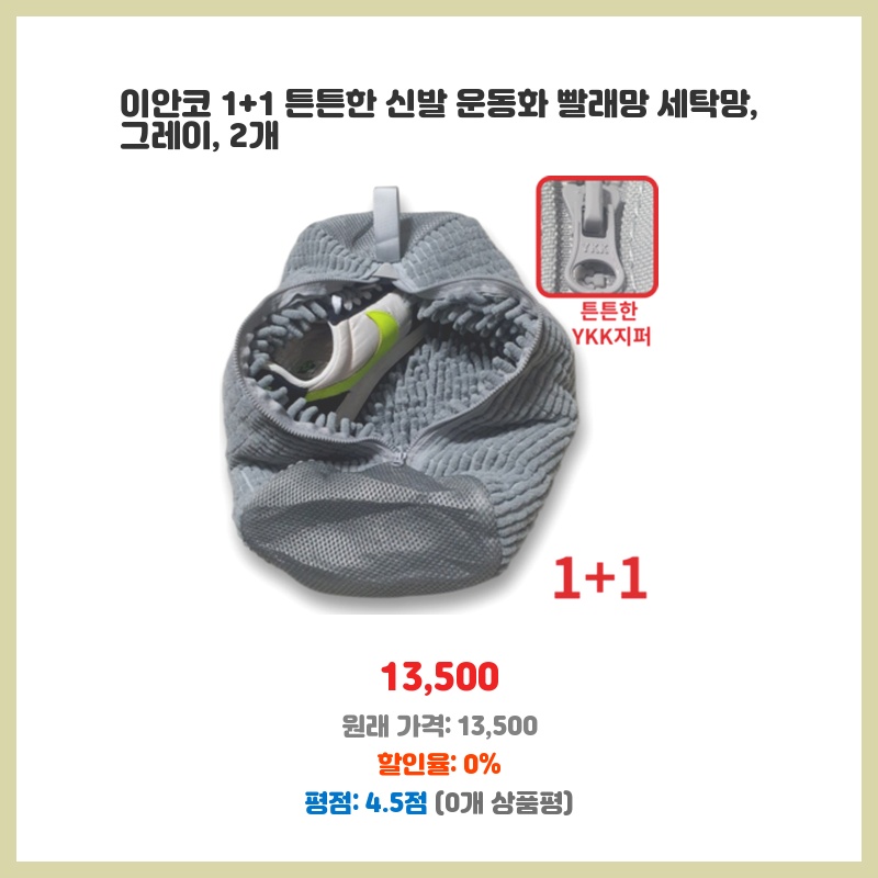 운동화 세탁이 번거로워 빨래망을 찾던 중 튼튼한 소재와 넉넉한 사이즈에 1+1 구성이라 가성비가 좋아 구매했습니다. 그레이 색상도 무난하고 예쁩니다. 두 개 있어서 돌려쓰기에도 편리할 것 같습니다.