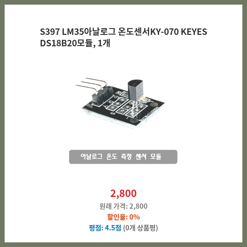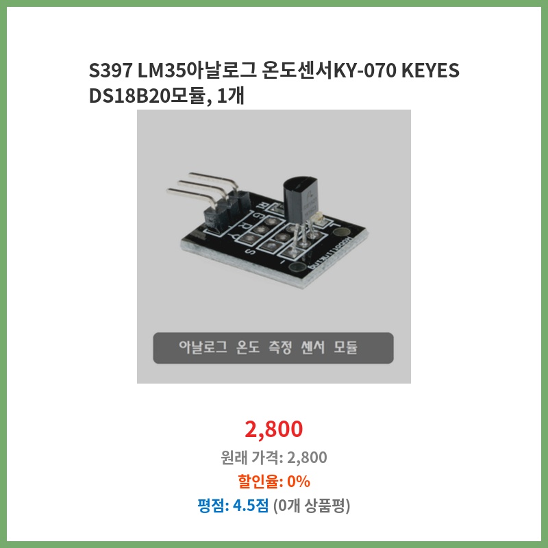 간편한 연결과 정확한 온도 측정이 필요했는데, LM35와 DS18B20 센서를 하나의 상품으로 저렴하게 구매할 수 있어서 좋았습니다. 두 가지 센서를 비교하며 사용해볼 수 있다는 점이 매력적이었습니다.