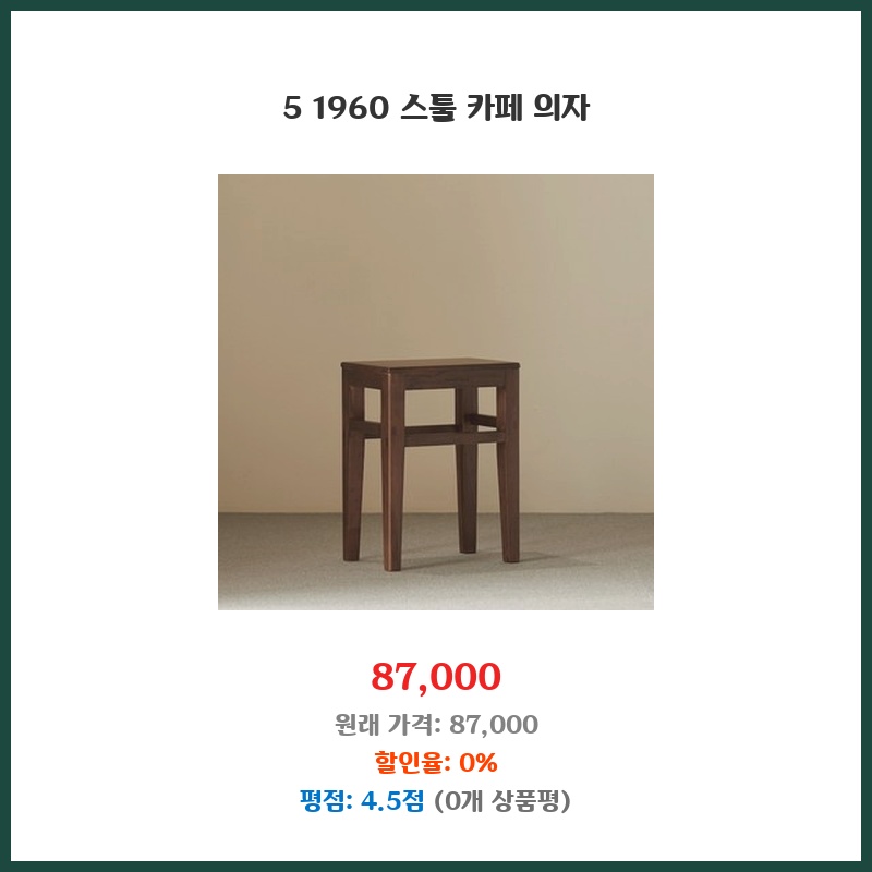 빈티지한 디자인이 마음에 들었고, 견고한 소재와 깔끔한 마감처리가 인상적이었습니다. 카페 분위기를 내고 싶어서 구매했는데, 생각보다 더 잘 어울립니다. 적당한 높이와 편안한 착석감도 장점입니다.
