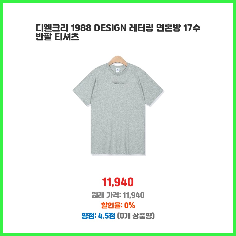 디엘크리, 1988티셔츠, 레터링티셔츠, 면혼방티셔츠, 반팔티, 17수티셔츠, 디자인티셔츠