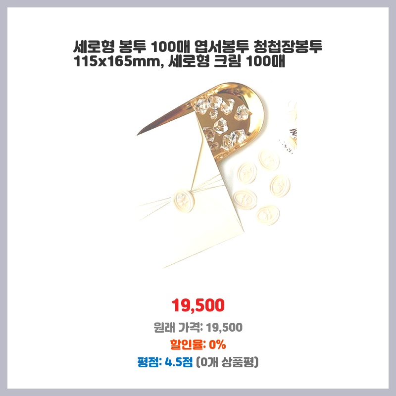 세로형 봉투 100매 엽서봉투 청첩장봉투 115x165mm, 세로형 크림 100매