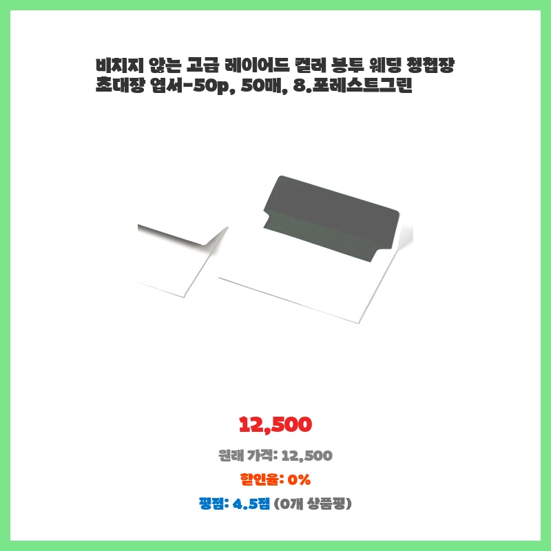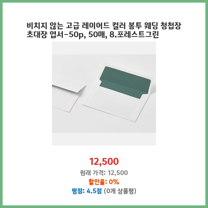 비치지 않는 고급 레이어드 컬러 봉투 웨딩 청첩장 초대장 엽서-50p, 50매, 8.포레스트그린