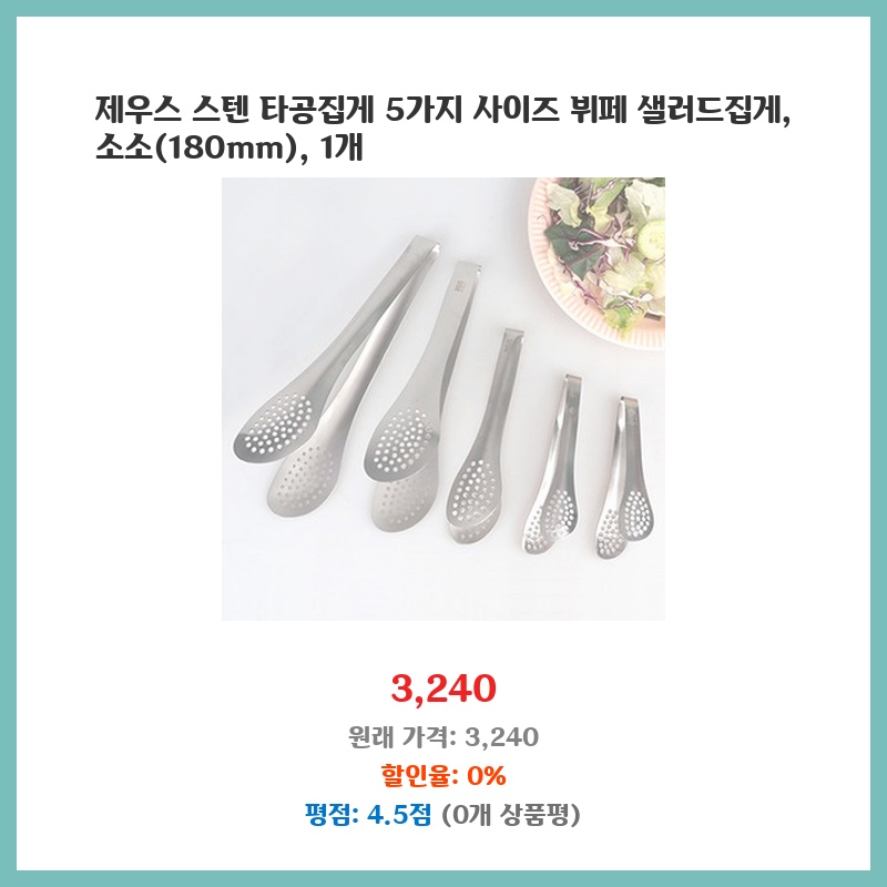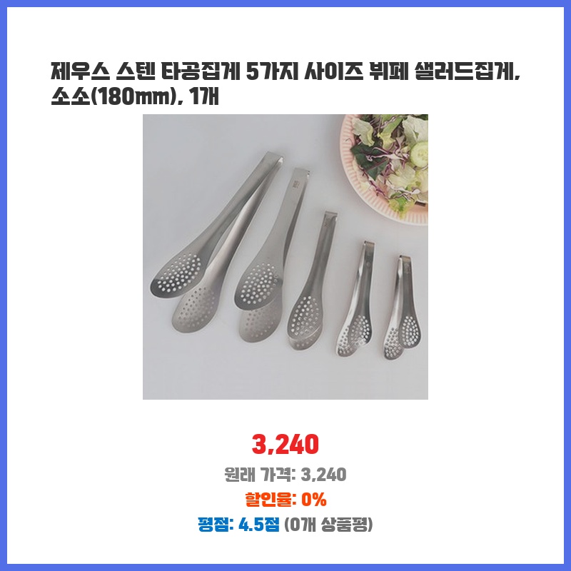 뷔페 운영을 위해 다양한 크기의 집게가 필요했는데, 스텐 소재라 위생적이고 5가지 사이즈가 있어 음식 종류에 맞춰 사용할 수 있어 구매했습니다. 내구성도 좋아 오래 사용할 수 있을 것 같습니다.