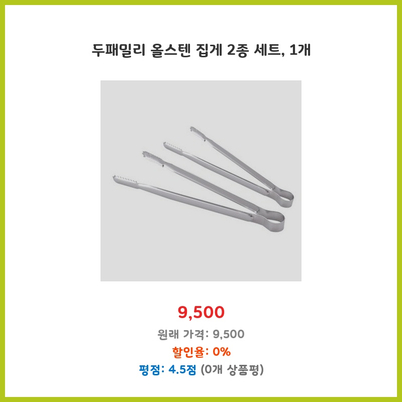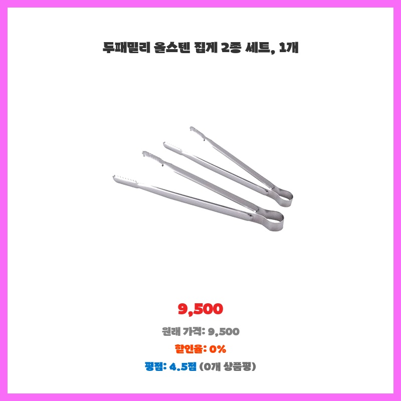 기존 집게들이 녹슬거나 내구성이 약해서 새 집게가 필요했어요. 올스텐 재질이라 위생적이고 튼튼해 보여서 구매했습니다. 2종 세트라 크기별로 활용도가 높을 것 같았습니다.