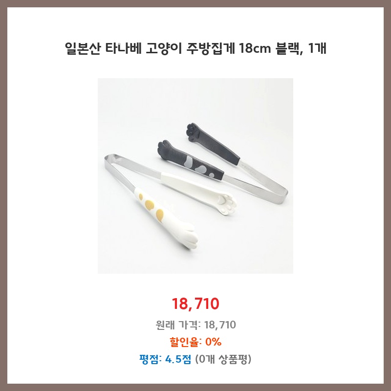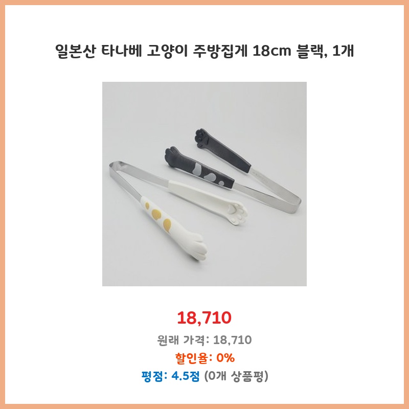 일본산 타나베 고양이 주방집게 18cm 블랙, 1개