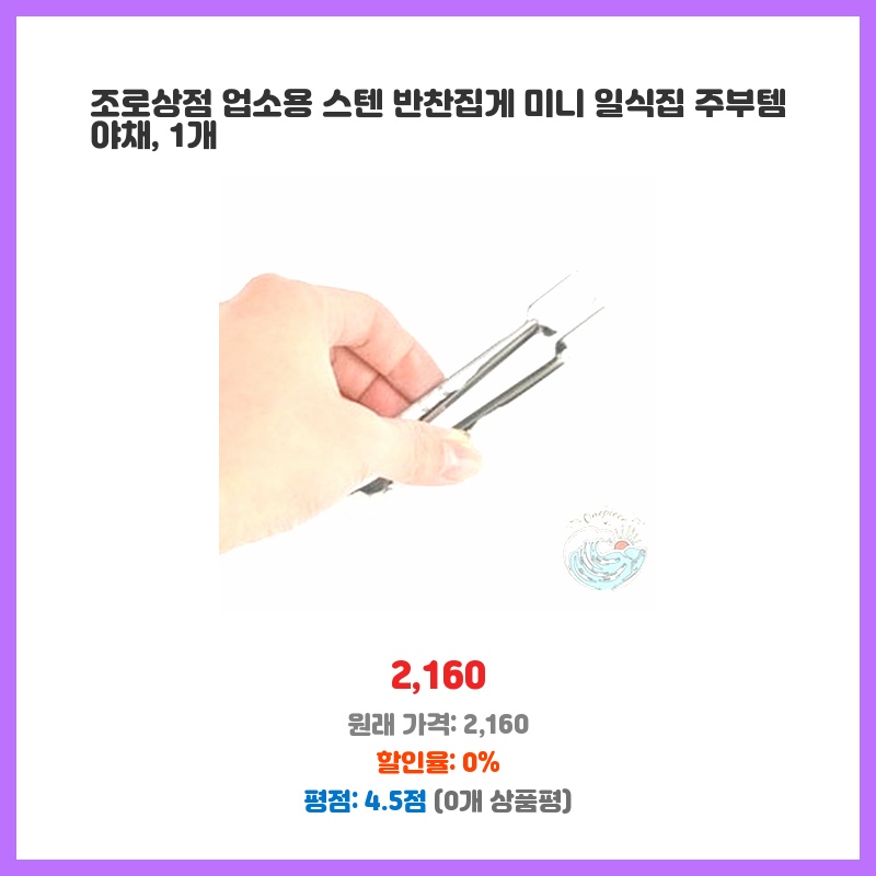조로상점 업소용 스텐 반찬집게 미니 일식집 주부템 야채, 1개