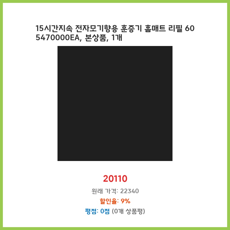 15시간지속 전자모기향용 훈증기 홈매트 리필 60 5470000EA, 본상품, 1개