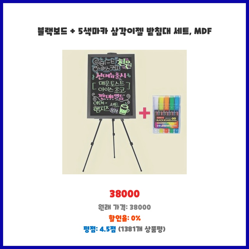 블랙보드 + 5색마카 삼각이젤 받침대 세트, MDF