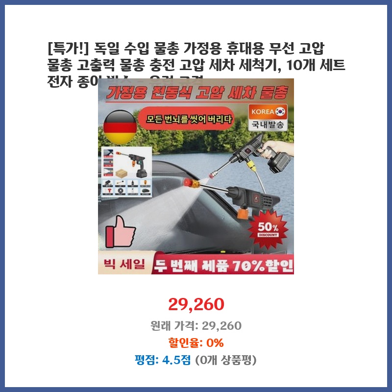 고압물총, 무선물총, 세차세척기, 휴대용세척기, 물총세트, 특가세일, 독일수입