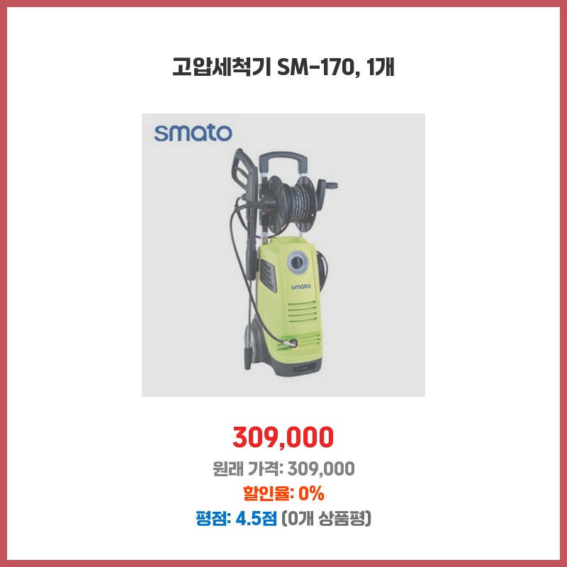 집 주변의 묵은 때와 찌든 때를 효과적으로 제거하고 싶어서 구매했습니다. SM-170의 강력한 세척력과 넉넉한 용량이 마음에 들었습니다. 다른 제품들과 비교해 가격 대비 성능이 우수하다고 판단했습니다.