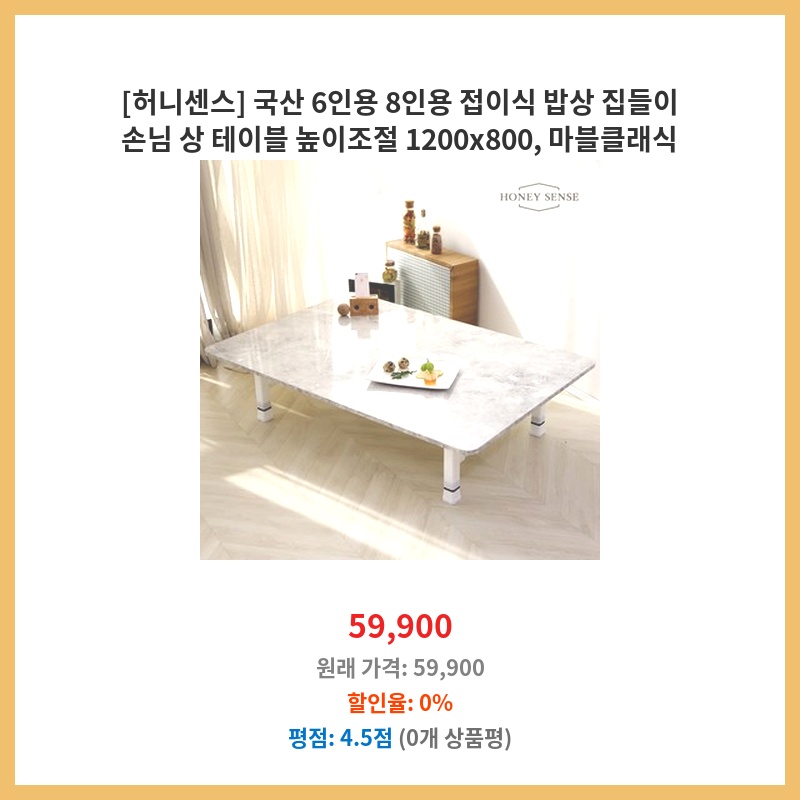 [허니센스] 국산 6인용 8인용 접이식 밥상 집들이 손님 상 테이블 높이조절 1200x800, 마블클래식