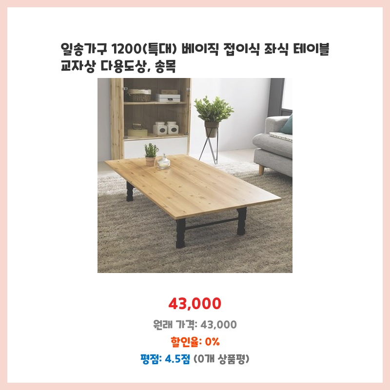 일송가구 1200(특대) 베이직 접이식 좌식 테이블 교자상 다용도상, 송목