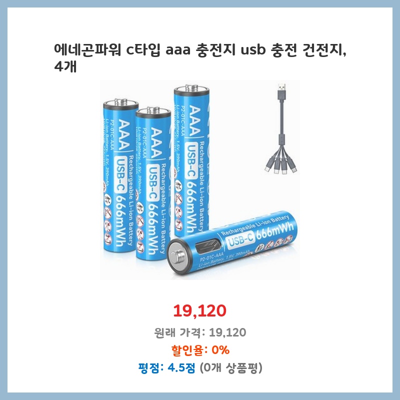 에네곤파워 c타입 aaa 충전지 usb 충전 건전지, 4개