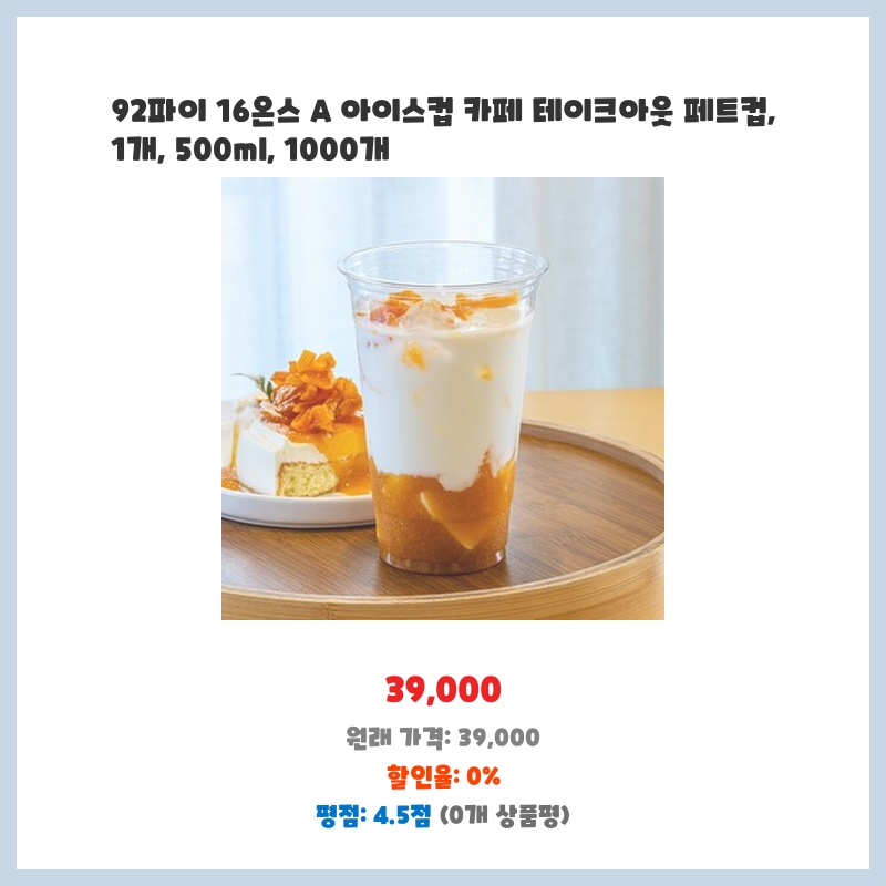 테이크아웃 매장 운영 중 넉넉한 사이즈의 아이스컵이 필요했습니다. 500ml 용량에 1000개들이라 경제적이고, 92파이 사이즈는 시원한 음료 제공에 적합해 보여 구매했습니다. 일회용이라 편리하고, PET 소재라 안전해 보였습니다.