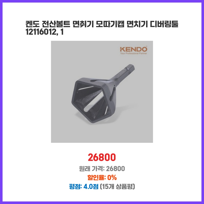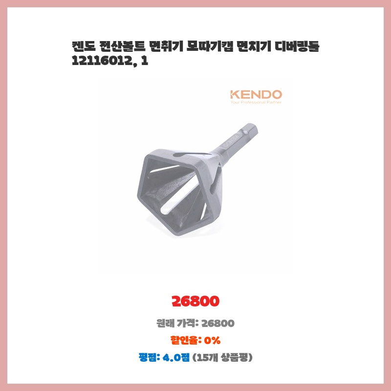 켄도 제품이라 믿을 수 있고, 면취 작업이 깔끔하게 되어 작업 효율이 높아질 것 같아 구매했습니다. 다양한 사이즈의 볼트에 사용할 수 있다는 점도 매력적입니다. 가격 대비 성능이 좋아 보였습니다.
