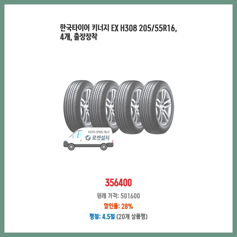 한국타이어 키너지 EX H308 205/55R16, 4개, 출장장착