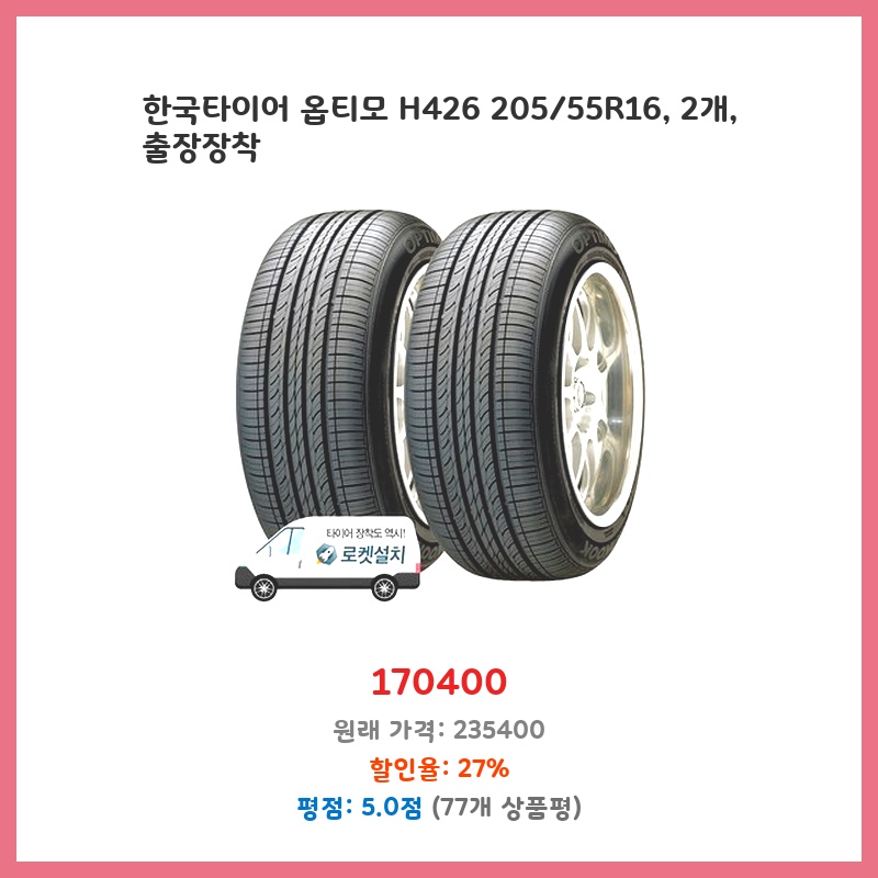 연비와 승차감을 고려하여 한국타이어 옵티모 H426을 선택했습니다. 합리적인 가격에 준수한 성능을 기대하며, 출장 장착 서비스가 편리해서 구매했습니다. 소음도 적다는 후기가 많아서 기대하고 있습니다.