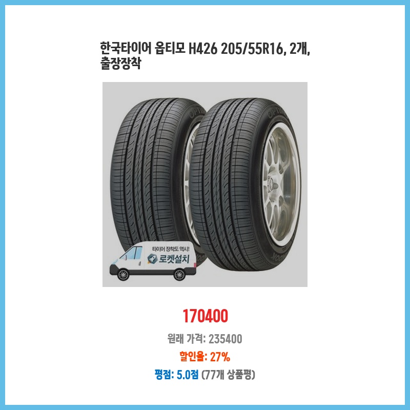 한국타이어 옵티모 H426 205/55R16, 2개, 출장장착