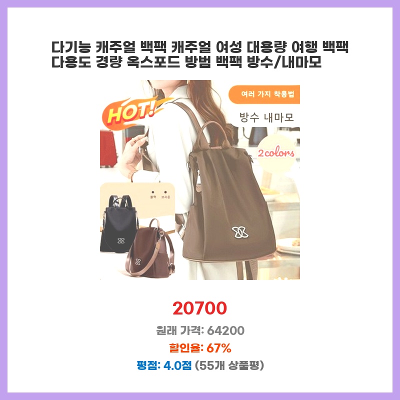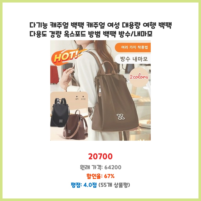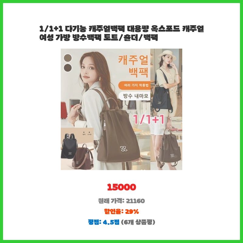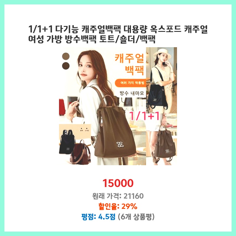 리뷰 1위 1/1+1 다기능 캐주얼백팩 대용량 옥스포드 캐주얼 여성 가방 방수백팩 토트/숄더/백팩 이 가격에 놓치면 후회