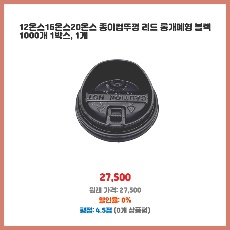 리뷰 1위 12온스16온스20온스 종이컵뚜껑 리드 롱개폐형 블랙 1박스 1개 구매자 평이 좋은 상품