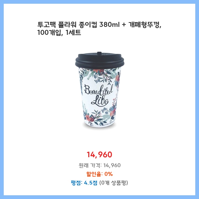 행사용으로 종이컵이 많이 필요했는데, 380ml 용량에 뚜껑까지 있어서 음료를 쏟을 염려 없이 편리하게 사용할 수 있을 것 같아 구매했습니다. 100개입이라 양도 넉넉하고 가격도 합리적이라고 생각합니다. 꽃무늬 디자인도 예뻐서 행사 분위기를 더욱 좋게 만들어줄 것 같습니다.