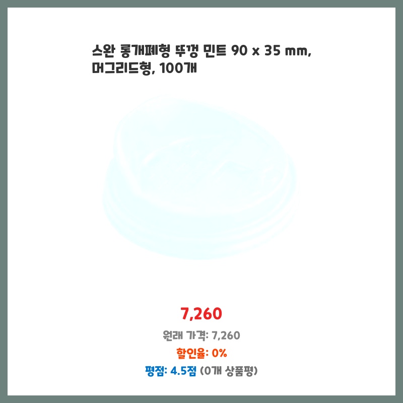 깔끔한 민트색상과 넉넉한 90x35mm 사이즈가 마음에 들어 구매했습니다. 롱개폐형 뚜껑이라 내용물 보관이 용이하고, 머그리드형이라 휴대성도 좋을 것 같아 100개나 주문했습니다. 소량으로 판매하는 곳보다 가성비가 좋아 선택했습니다.
