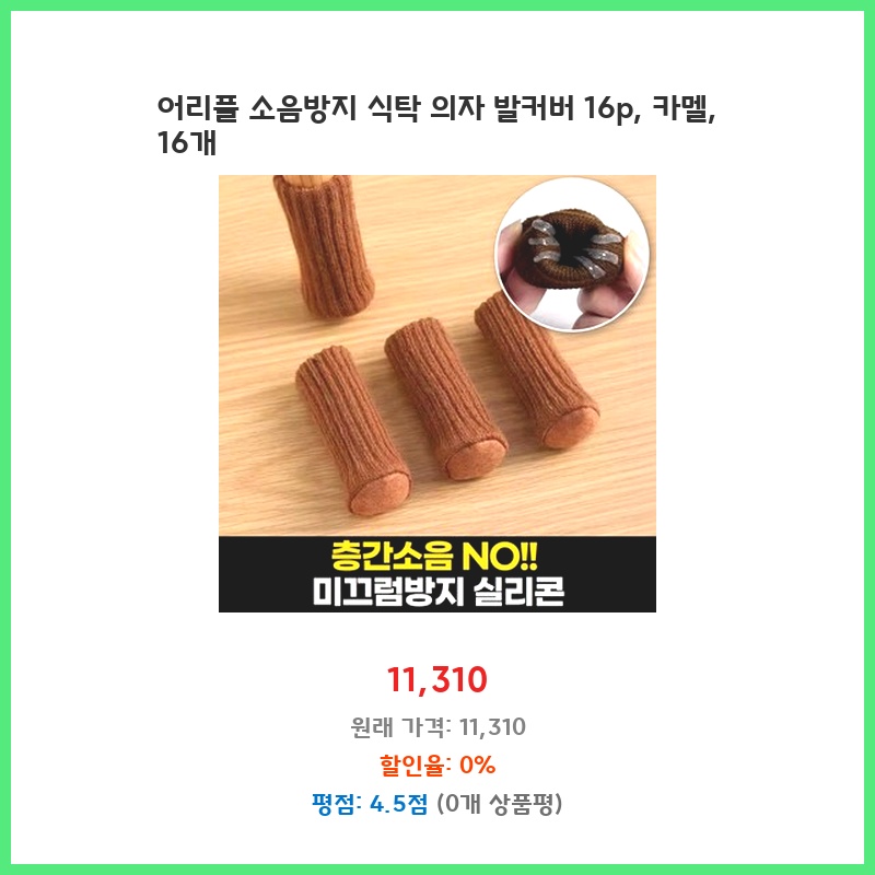 아이들이 의자를 끌고 다니는 소음 때문에 힘들었는데, 이 제품으로 소음이 확실히 줄었습니다. 부드러운 소재라 바닥 손상 걱정도 덜고, 16개나 들어있어 여러 의자에 사용 가능해서 좋았습니다. 카멜 색상도 예쁘고 깔끔합니다.