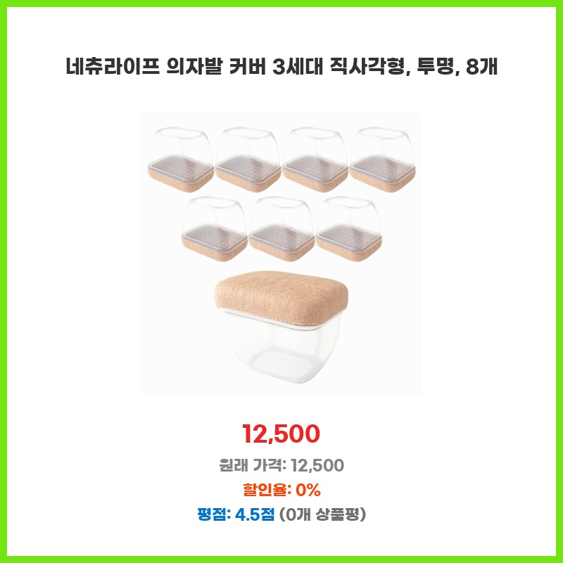 네츄라이프 의자발 커버 3세대 직사각형, 투명, 8개