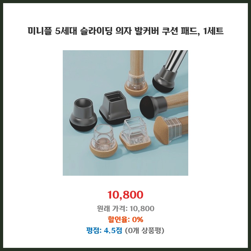 의자 다리에 착 감기는 밀착력이 좋고, 바닥 긁힘도 방지되어 만족합니다. 투명해서 티도 안 나고, 깔끔해 보여요!