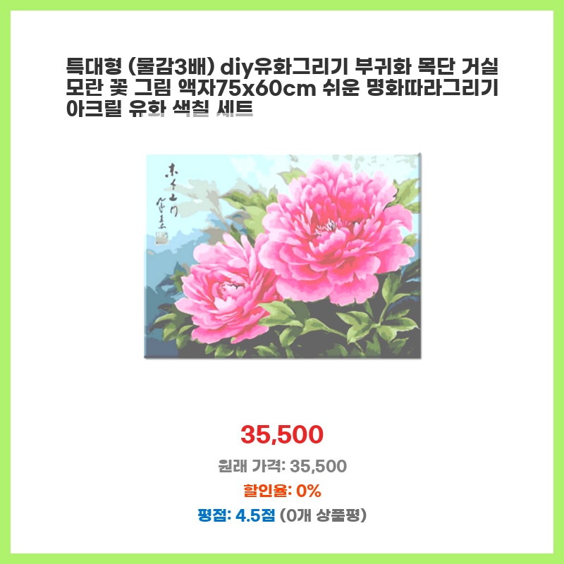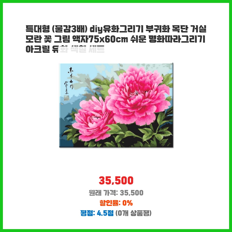 특대형 (물감3배) diy유화그리기 부귀화 목단 거실 모란 꽃 그림 액자75x60cm 쉬운 명화따라그리기 아크릴 유화 색칠 세트
