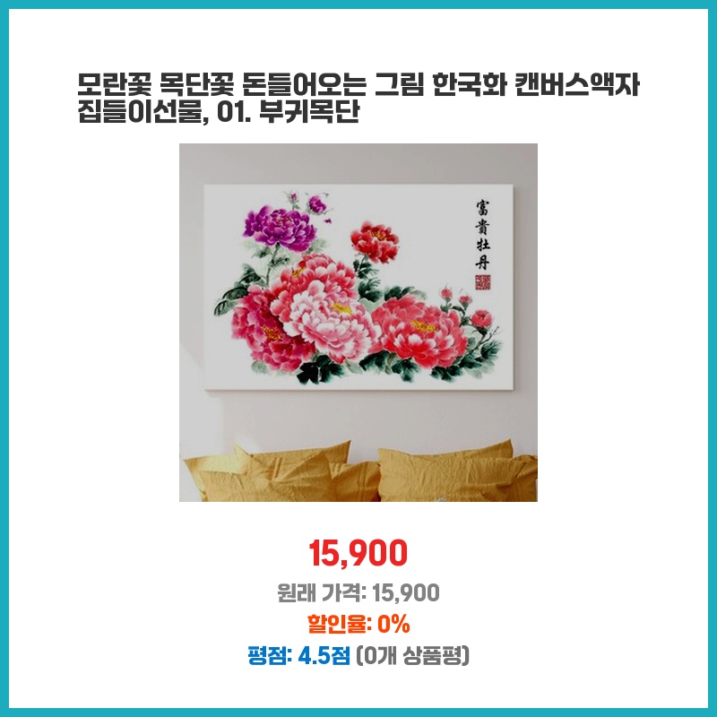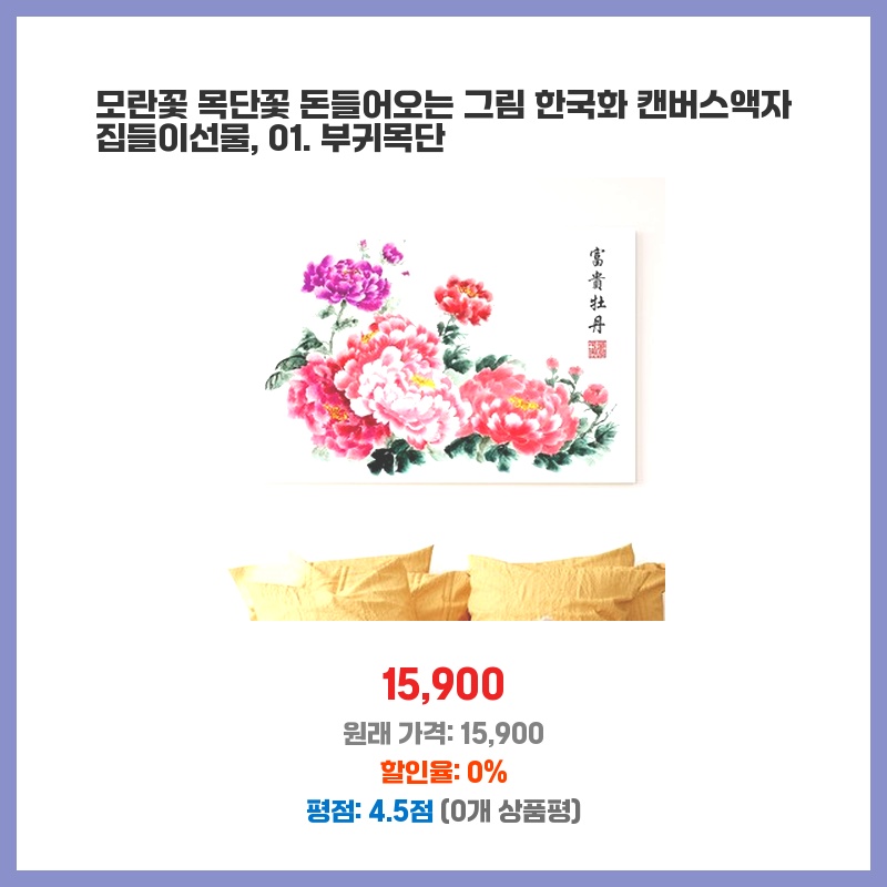 집들이 선물로 고급스럽고 의미있는 선물을 찾던 중, 모란꽃 그림의 화려함과 돈이 들어온다는 좋은 의미가 마음에 들어 구매했습니다. 캔버스 액자라 관리도 편하고 가격도 부담없어 좋았습니다. 깔끔한 디자인이 어떤 인테리어에도 잘 어울릴 것 같아 선택했습니다.