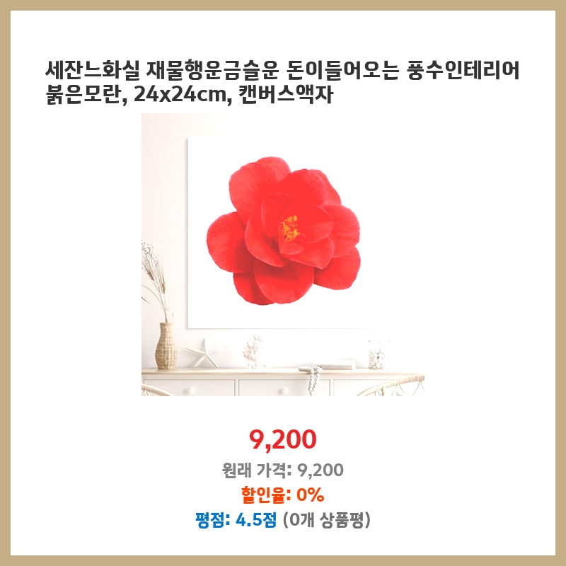 베스트 평점 세잔느화실 재물행운금슬운 돈이들어오는 풍수인테리어 붉은모란 24x24cm 캔버스액자 망설일 필요 없는 상품