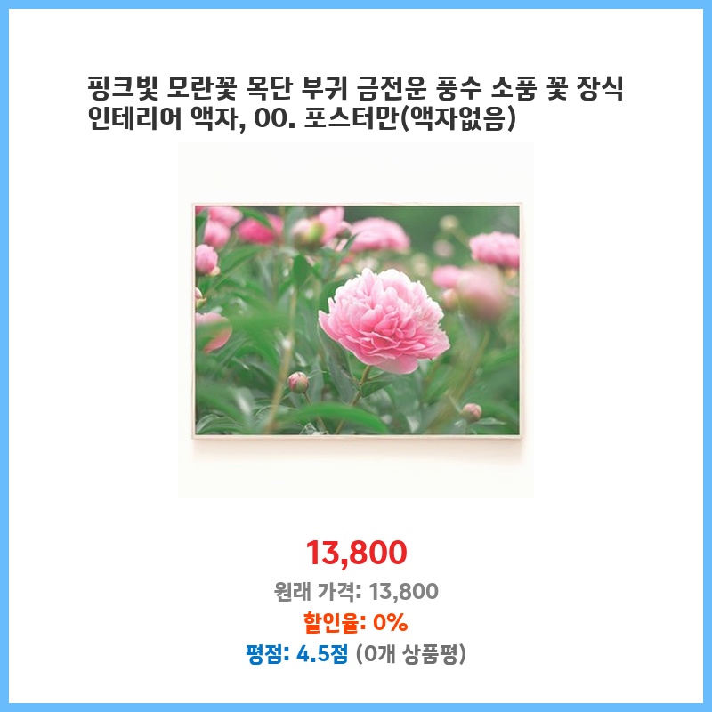 핑크빛 모란꽃 목단 부귀 금전운 풍수 소품 꽃 장식 인테리어 액자, 00. 포스터만(액자없음)