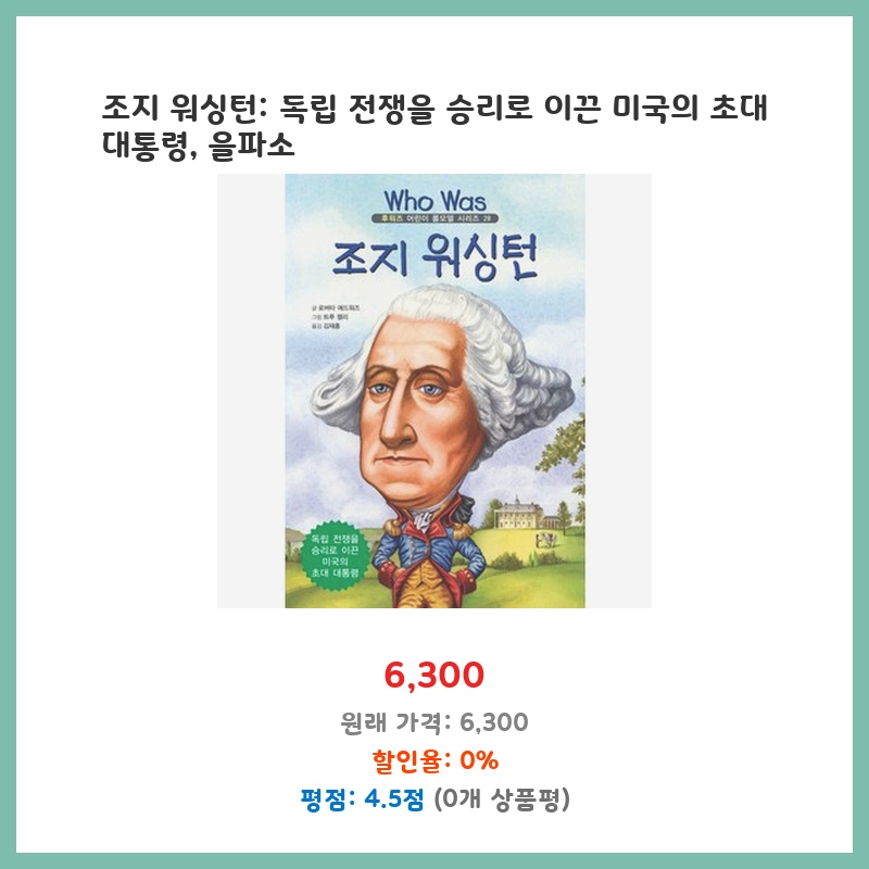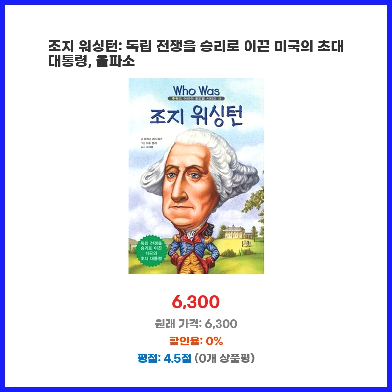 조지 워싱턴의 일대기와 독립 전쟁에 대한 이해를 높이고 싶어서 구매했습니다. 미국 역사에 대한 깊이 있는 내용을 담고 있을 것으로 예상되어 기대됩니다. 책의 구성과 내용이 흥미로울 것 같습니다.