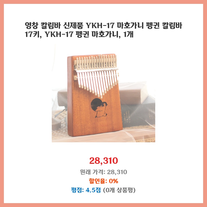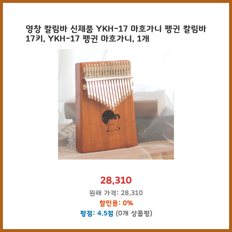 빠른 배송 영창 칼림바 신제품 YKH-17 마호가니 펭귄 칼림바 17키 YKH-17 펭귄 마호가니 1개 만족도가 높은 제품