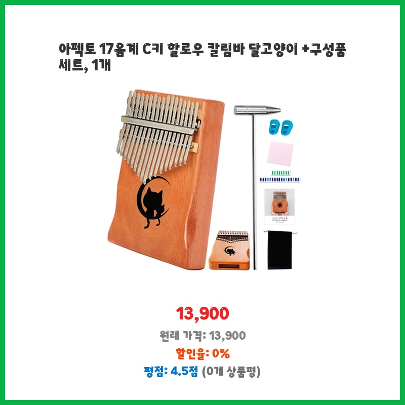 아펙토 17음계 C키 할로우 칼림바 달고양이 +구성품 세트, 1개