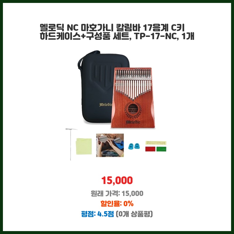 멜로딕 NC 마호가니 칼림바 17음계 C키 하드케이스+구성품 세트, TP-17-NC, 1개