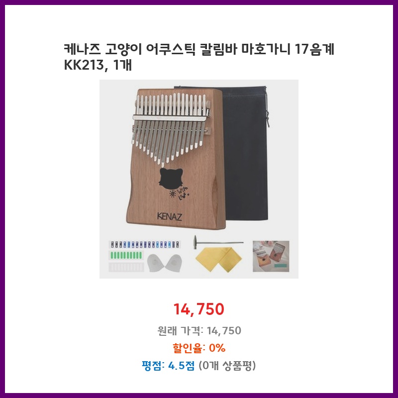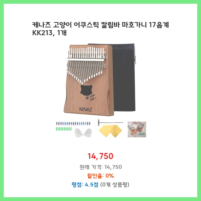 케나즈 고양이 어쿠스틱 칼림바 마호가니 17음계 KK213, 1개