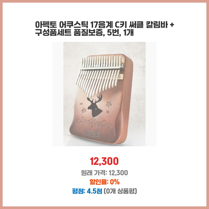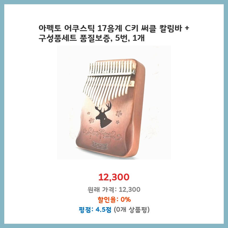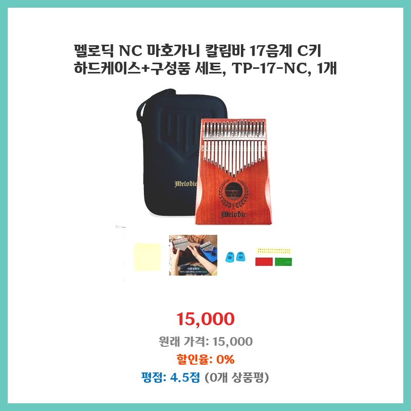 17음계의 칼림바를 찾던 중 마호가니 재질과 하드케이스 포함 구성에 가격이 합리적이어서 구매했습니다. C키라 초보자도 배우기 쉽고, 휴대하기에도 편리할 것 같았습니다. 깔끔한 디자인도 마음에 들었습니다.