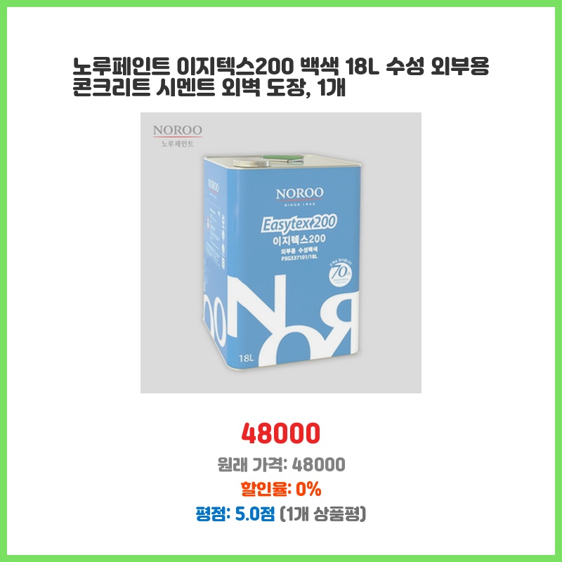 빠른 배송 이지텍스 200 18리터 노루페인트 수성 외부용 페인트 콘크리트 외벽용 백색 18L 1개 이 가격에 놓치면 후회