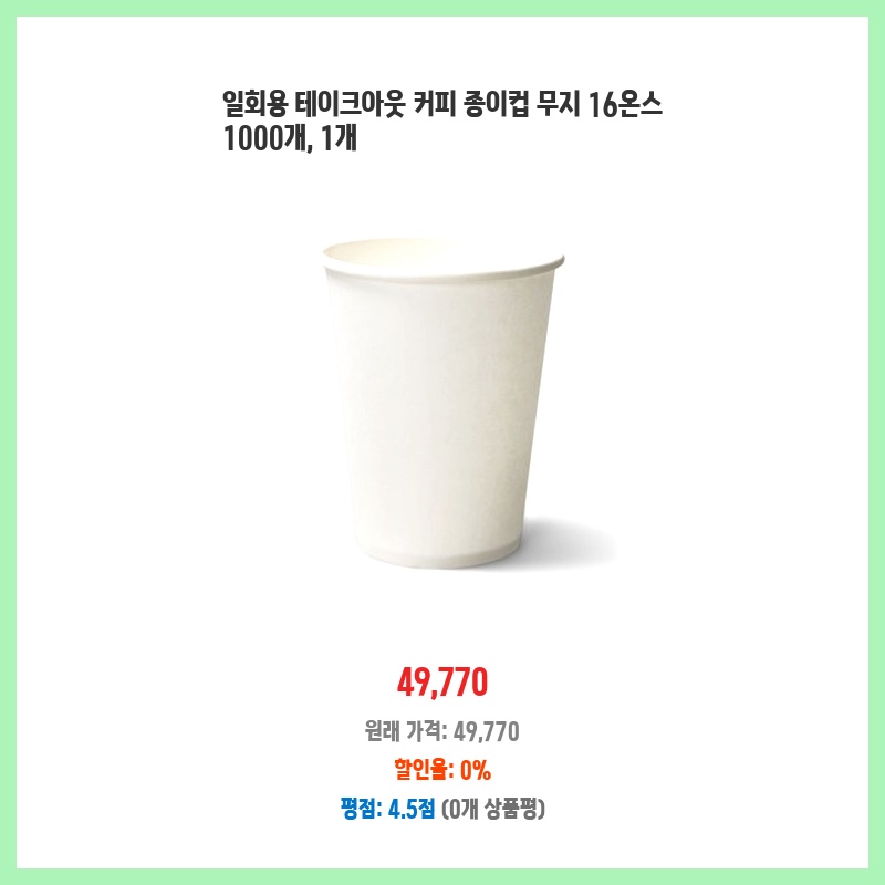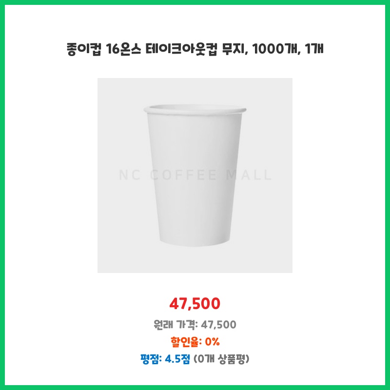 매장에서 사용할 16온스 종이컵이 필요했는데, 1000개 대량 구매로 가격이 저렴하고 무지라 디자인 제약 없이 사용할 수 있어서 구매했습니다. 넉넉한 수량으로 재고 걱정 없이 운영할 수 있습니다.