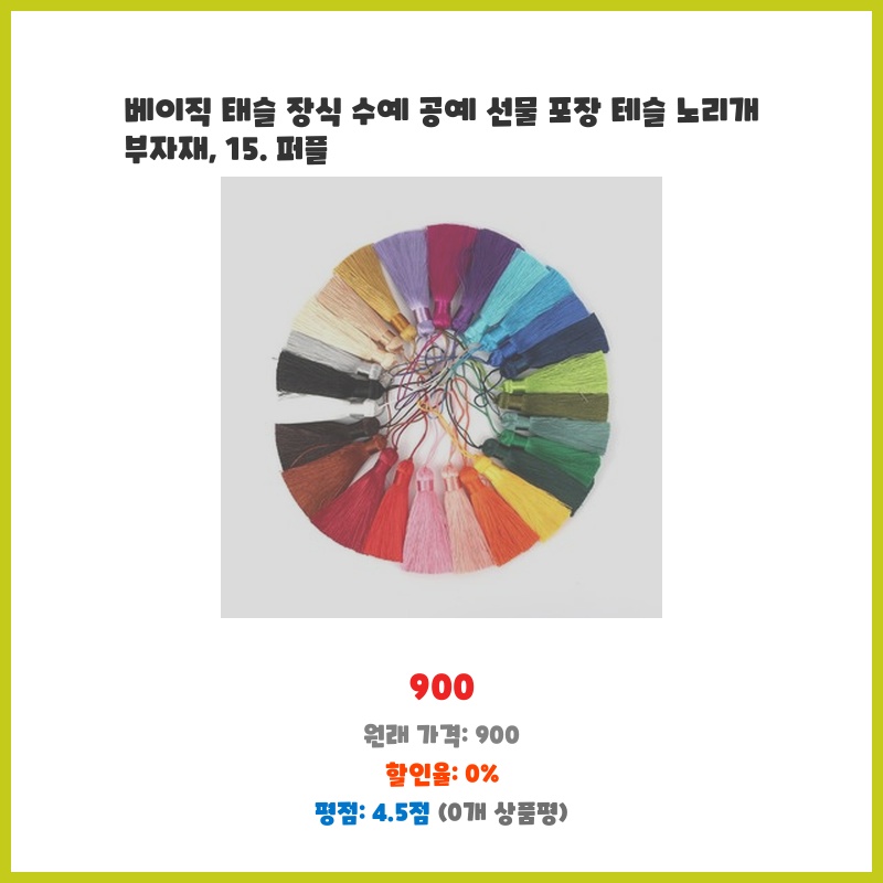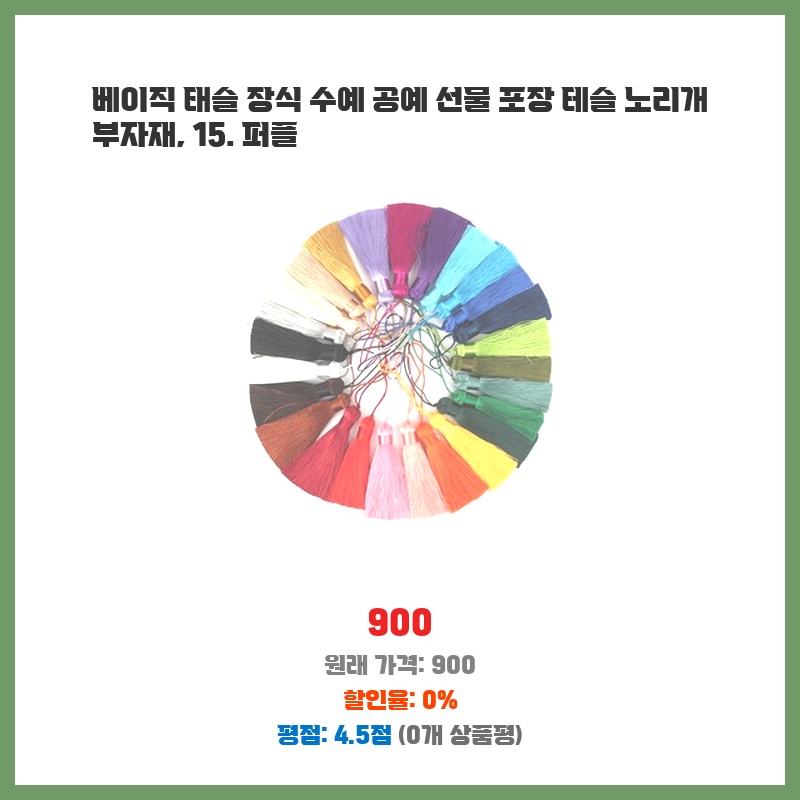 깔끔한 디자인의 보라색 태슬이 필요했는데, 가격도 저렴하고 15cm 길이라 활용도가 높을 것 같아 구매했습니다. 수예 공예에 사용하기에 적당한 크기와 색상입니다.