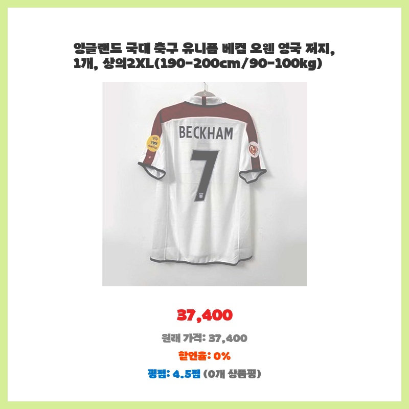 베컴과 오웬 시대의 레트로 디자인이 마음에 들어 구매했습니다. 2XL 사이즈가 넉넉하게 나와 편안하게 착용할 수 있을 것 같아 기대됩니다. 국대 유니폼이라 퀄리티도 괜찮을 것으로 예상됩니다.