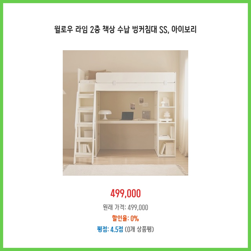 윌로우 라임 2층 책상 수납 벙커침대 SS, 아이보리