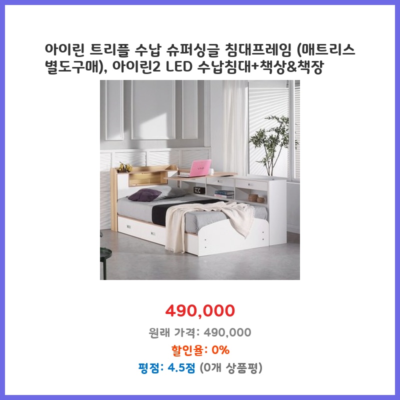 수납침대, 슈퍼싱글침대, 아이린침대, LED침대, 수납가구, 책상세트, 침대프레임