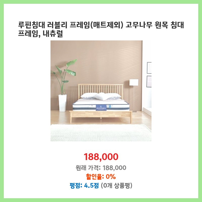 깔끔한 디자인과 고무나무 원목 소재가 마음에 들어 구매했습니다. 내추럴 색상이라 어떤 인테리어에도 잘 어울릴 것 같고, 튼튼해 보여 오래 사용할 수 있을 것 같습니다. 매트 없이 프레임만 구매해서 저렴하게 원하는 매트를 따로 선택할 수 있는 점도 좋았습니다.