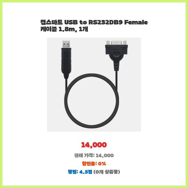 설치도 간편하고, 무엇보다 기존 시리얼 장비와 바로 연결되어 잘 작동합니다. 가격도 저렴하고 만족스러운 구매였습니다.