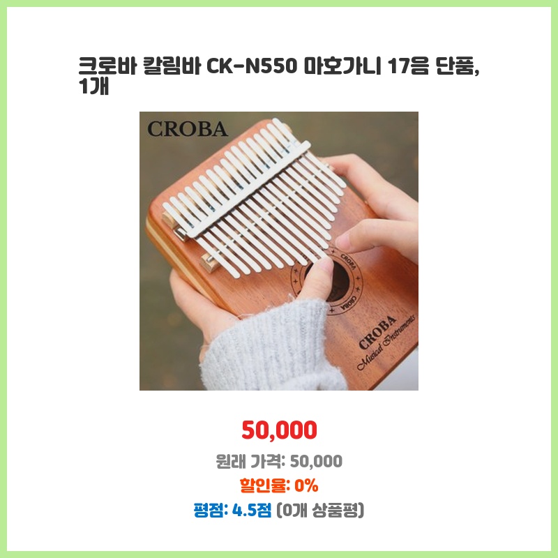 크로바 칼림바 CK-N550 마호가니 17음 단품, 1개