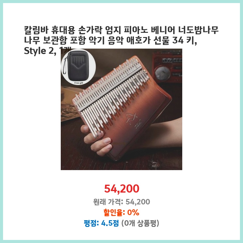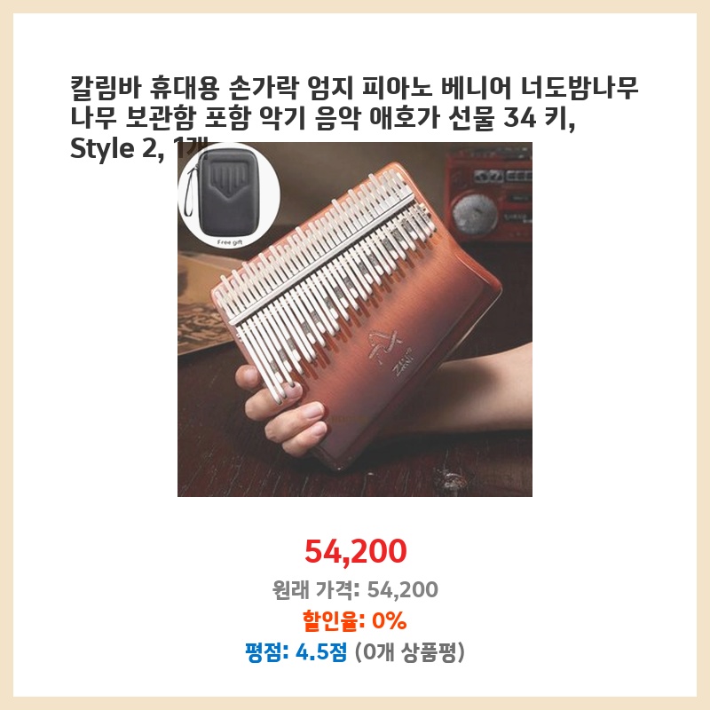 생각보다 훨씬 튼튼하고, 칼림바 연주 시 소리가 맑고 또렷하게 잘 납니다. 가격 대비 만족도가 높아요!
